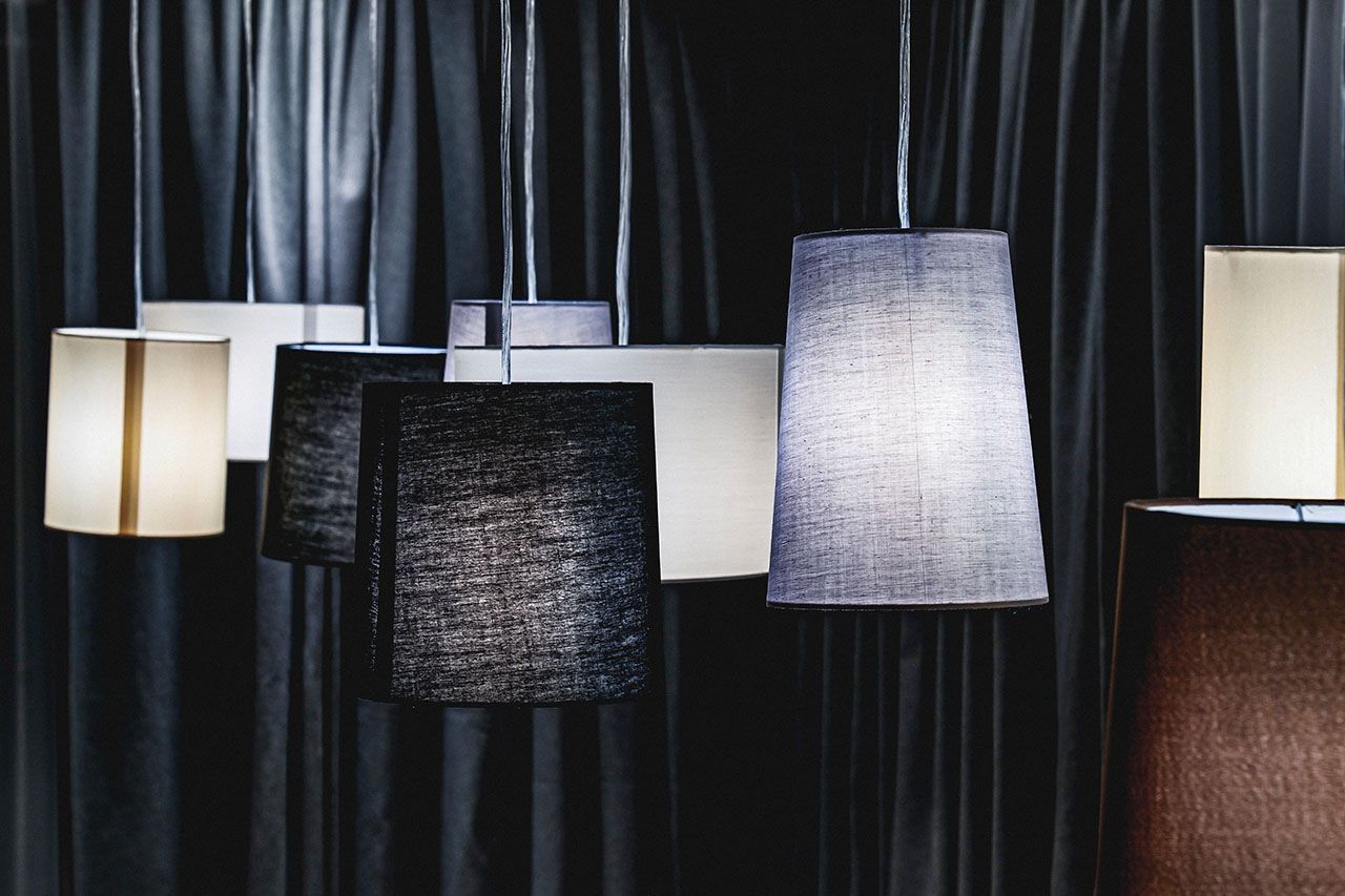 a living room with a couch , chairs , a table and a lamp